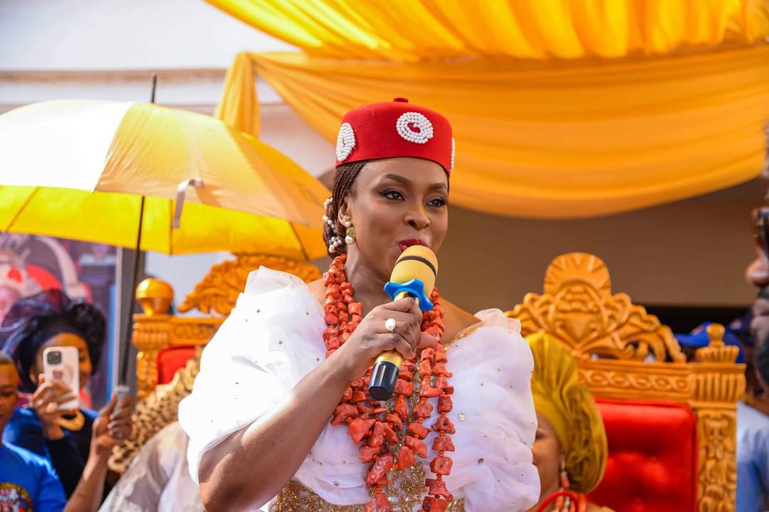 Chimamanda wearing her Red Cap receiving her chieftaincy title as “Odeluwa 1” recently in East Nigeria