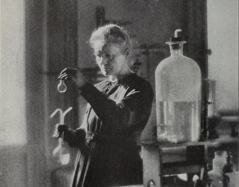Marie Curie in her lab doing what she did best